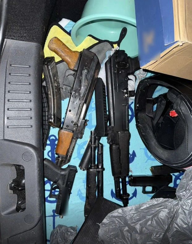 Κατά την έρευνα στα οχήματα, αστυνομικοί της Διεύθυνσης Αντιμετώπισης Οργανωμένου Εγκλήματος βρήκαν βαρύ οπλισμό: τρία καλάσνικοφ, δύο πιστόλια με σιγαστήρες, γεμιστήρες, φυσίγγια, καθώς και γάντια, κράνη και δοχεία με καύσιμα. Ο εξοπλισμός έχει αποσταλεί στα εγκληματολογικά εργαστήρια για βαλλιστική εξέταση, ώστε να διαπιστωθεί εάν έχει χρησιμοποιηθεί σε εγκληματικές πράξεις.