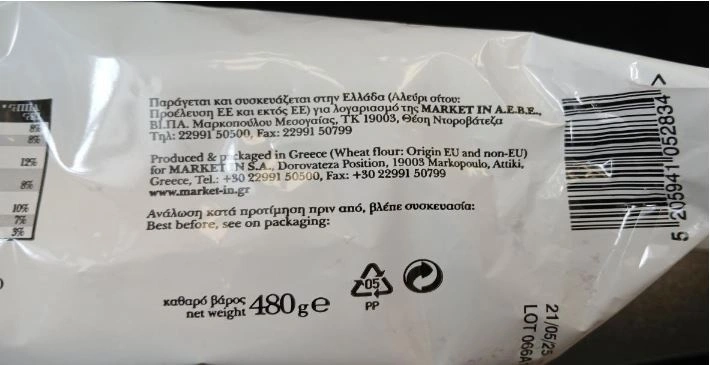 Ο ΕΦΕΤ ανακοίνωσε την Τετάρτη (12/11) την ανάκληση της παρτίδας Lot 066A1 του συγκεκριμένου τσουρεκιού, με ημερομηνία ανάλωσης «κατά προτίμηση πριν από τις 21/05/25» και συσκευασία 480 γρ., που παράγεται στην Ελλάδα για λογαριασμό της ΜΑΡΚΕΤ ΙΝ.