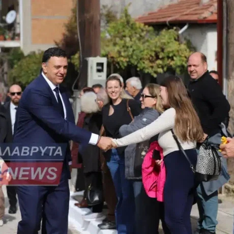 Κατά τη διάρκεια της παραμονής τους, ο υπουργός και η σύζυγός του έκαναν κυριακάτικη βόλτα στο κέντρο των Καλαβρύτων, τραβώντας πάνω τους τα βλέμματα των περαστικών.