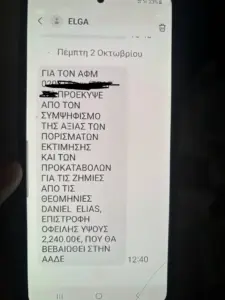 Δείτε ένα παράδειγμα SMS που έστειλε ο ΕΛΓΑ: