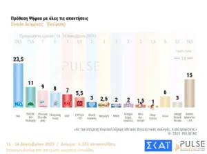 Δημοσκόπηση Pulse: Πόση είναι η διαφορά ΝΔ με ΠΑΣΟΚ – Ποιο κόμμα παίρνει την τρίτη θέση